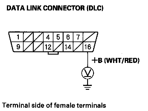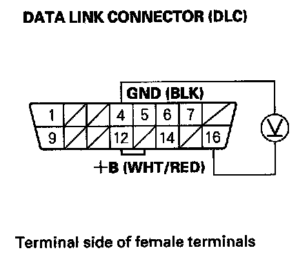 26. Measure voltage between DLC terminal No. 16 and body ground.