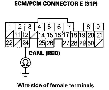 36. Check for continuity between ECM/PCM connector terminal E24 and body ground.