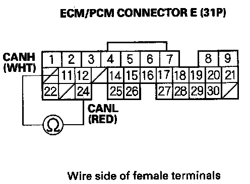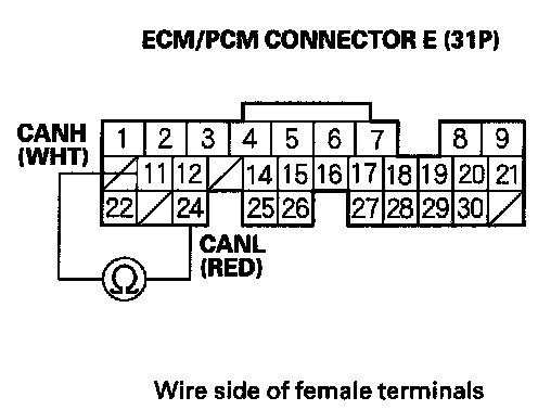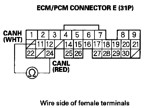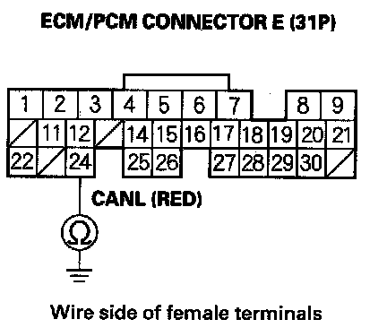 4. Measure resistance between ECM/PCM connector terminals E11 and E24.