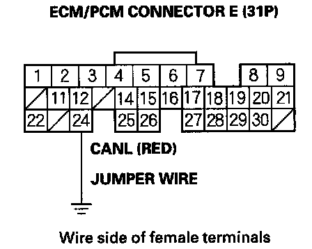 12. Connect ECM/PCM connector terminal E24 to body ground with a jumper wire.
