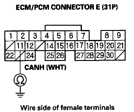 21. Measure resistance between ECM/PCM connector terminals E11 and E24.