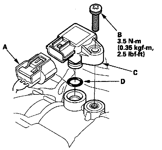 Install the parts in the reverse order of removal with a new O-ring (D).
