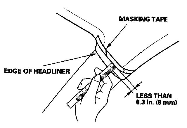 To prevent the side curtain airbag from deploying and damaging the pillar trim, the overlap between the headliner and pillar trim must be less then 0.3 in. (8 mm). To check the overlap, do this: