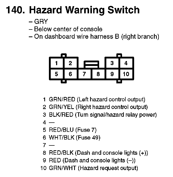 140. Hazard Warning Switch: