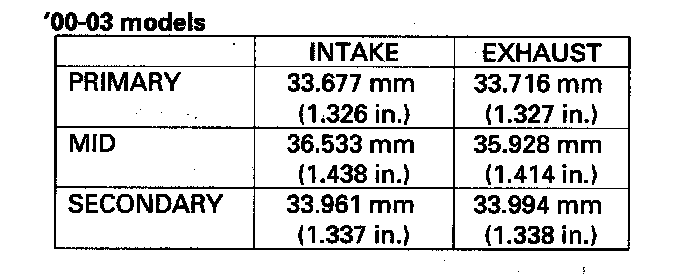^ If the camshaft-to-holder clearance is beyond the service limit and the camshaft has been replaced, replace the cylinder head.