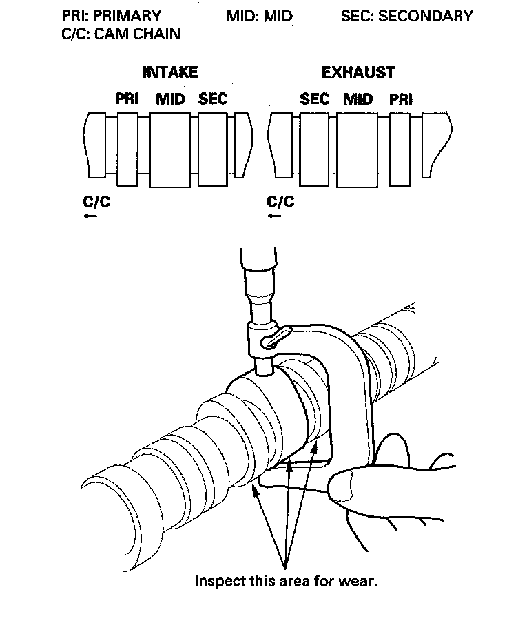 Camshaft InspectionNOTE: Do not rotate the camshaft during inspection.