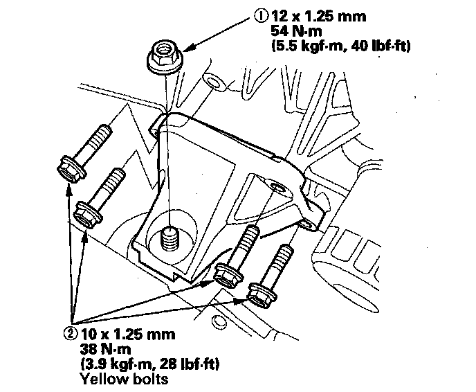 3. Install the right side engine mount bracket, then tighten the bolts and nut in the numbered sequence shown.