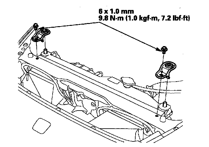 3. Remove the bolts, then remove the upper mount brackets from the radiator.