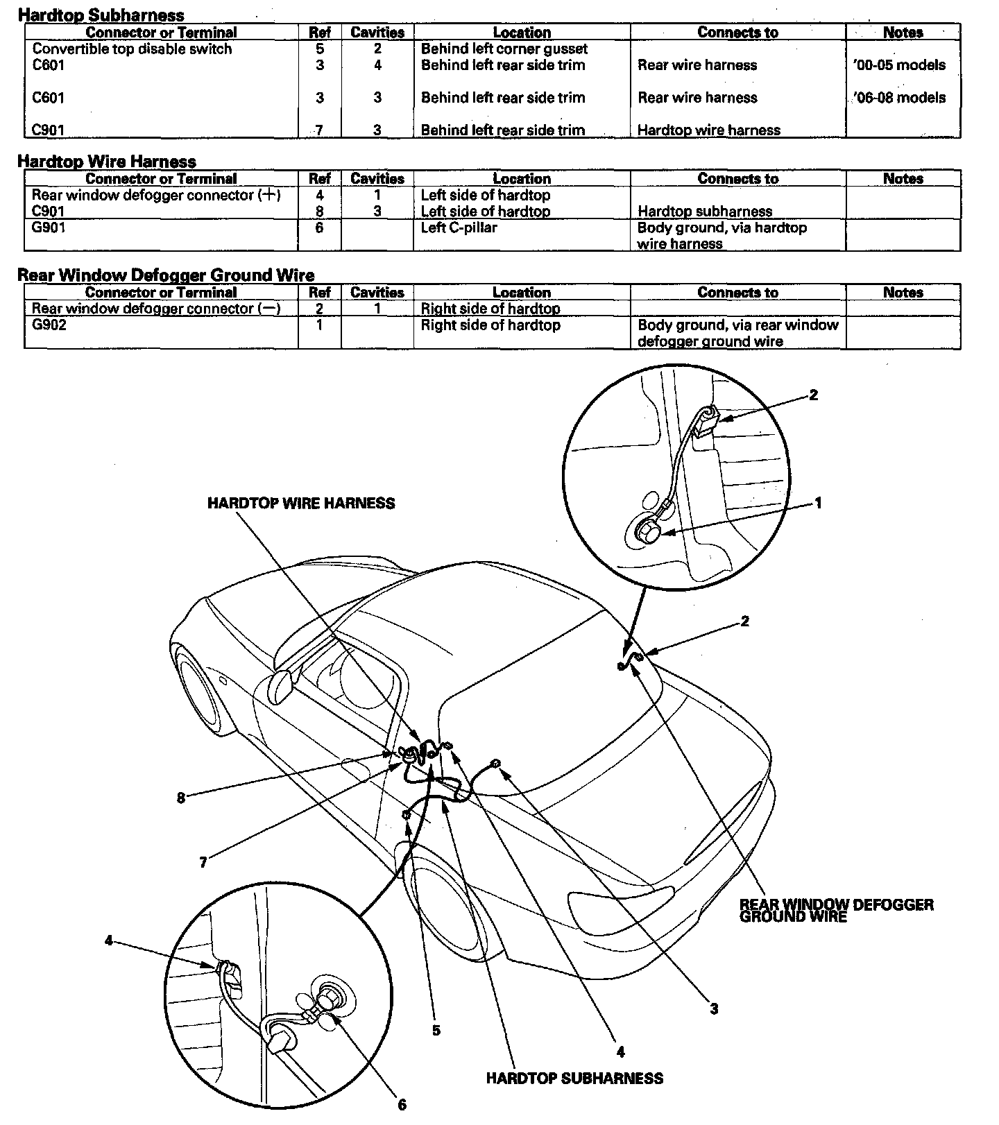 Hardtop Subharness/Hardtop Wire Harness/Rear Window Defogger Ground Wire: