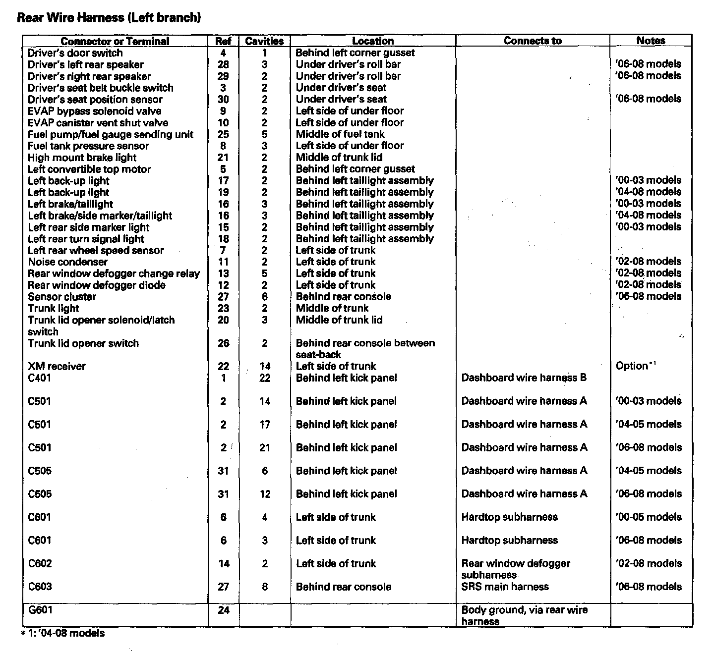 Rear Wire Harness (Left Branch):