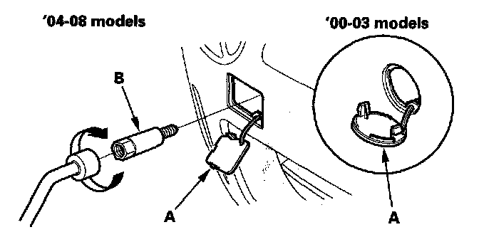 3. Using the wheel wrench, fasten the extension (B) into the bolt hole in the bumper.