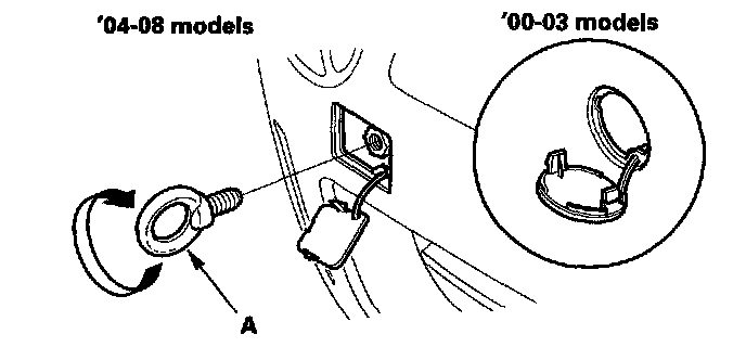 1. Remove the cover (A) from the bumper.