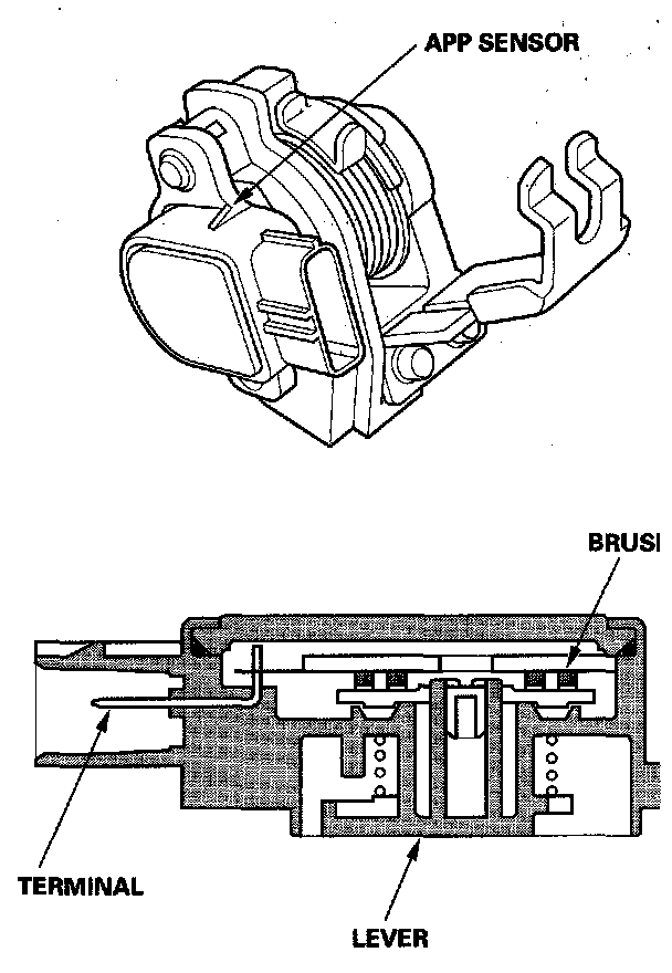 As the accelerator pedal position changes, the sensor varies the signal voltage to the ECM.