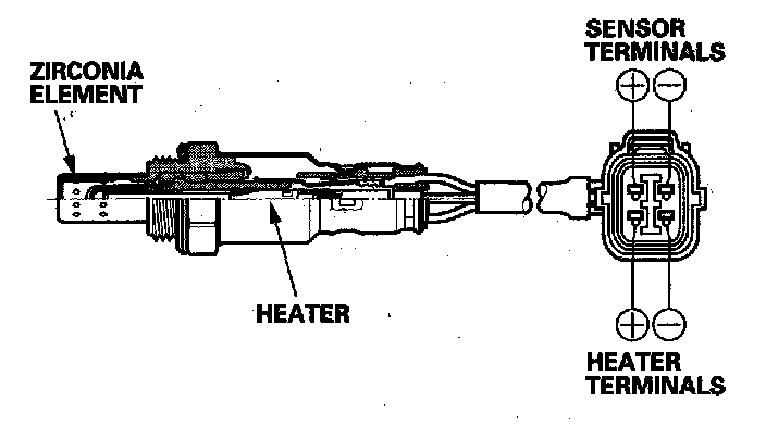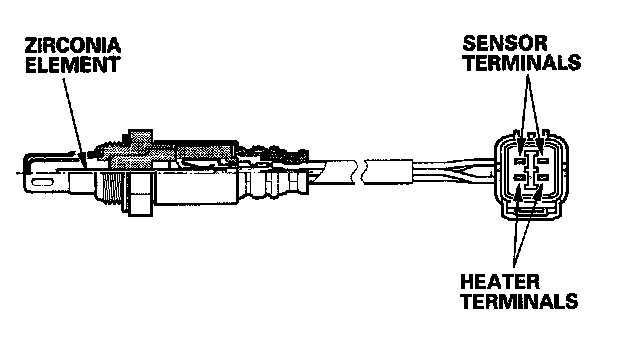 The secondary HO2S detects the oxygen content in the exhaust gas downstream of the three way catalytic converter (TWO, and sends signals to the ECM which varies the duration of fuel injection accordingly. To stabilize its output, the sensor has an internal heater. The ECM compares the HO2S output with the A/F sensor output to determine catalyst efficiency. The secondary HO2S is located on the TWC.