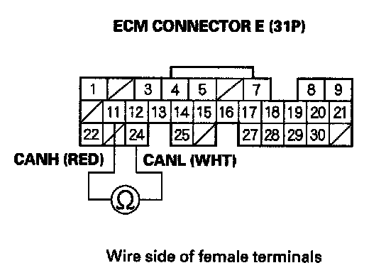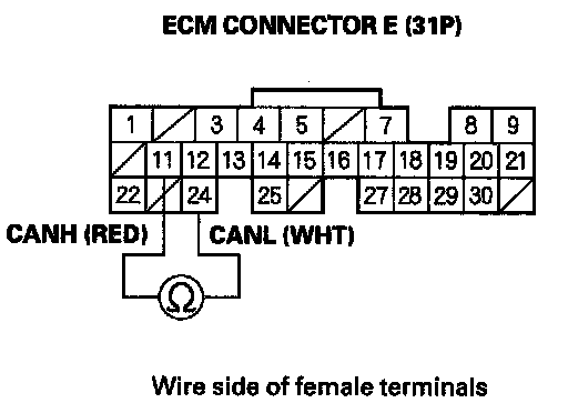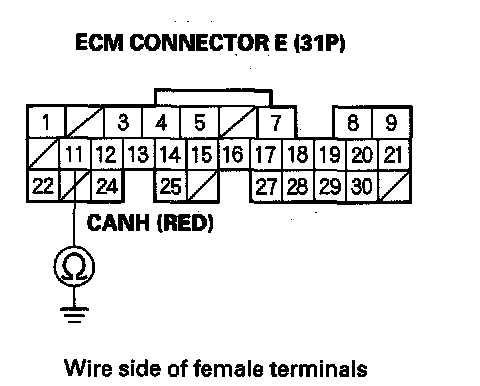 5. Measure resistance between ECM connector terminals E11 and E24*.