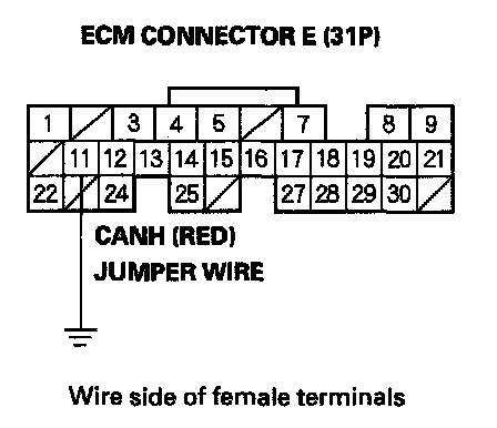 12. Remove the jumper wire from ECM connector E (31P).
