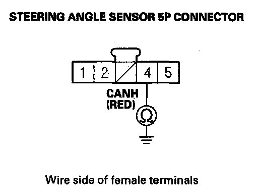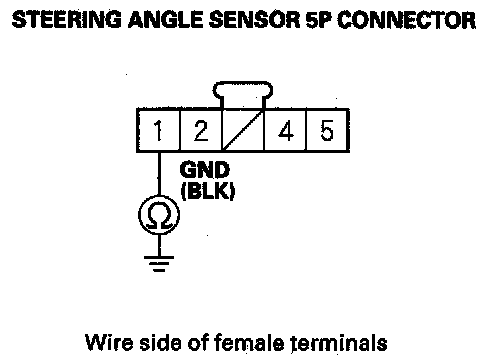 21. Check for continuity between steering angle sensor 5P connector terminal No.1 and body ground.