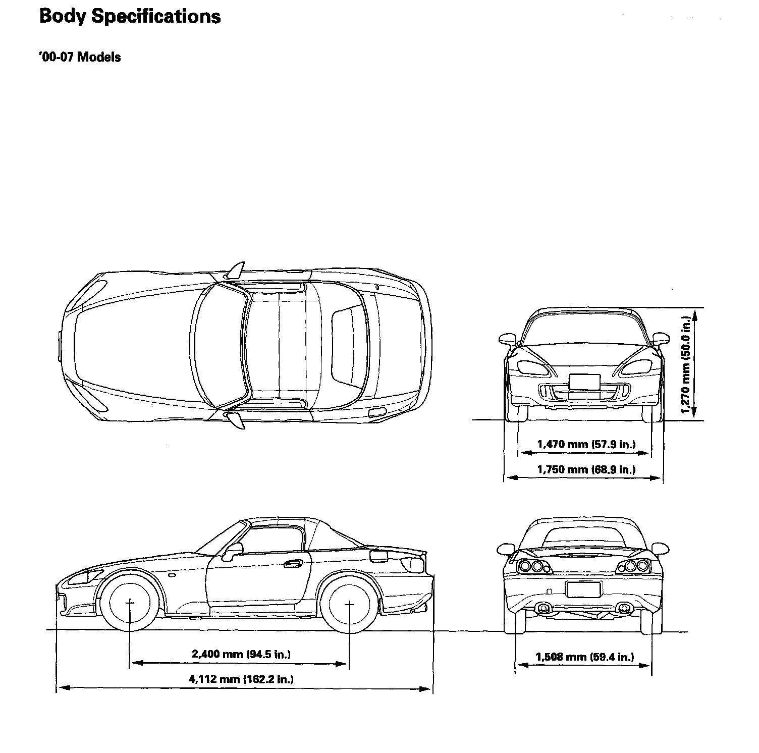 Body Specifications '00 - 07 Models: