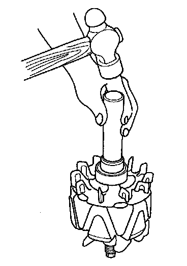 14. With a hammer and commercially available tools shown, install a new rear bearing on the rotor shaft.