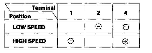 4. Test the motor by connecting battery power and ground according to the table. If the motor does not run or fails to run smoothly, replace the motor.