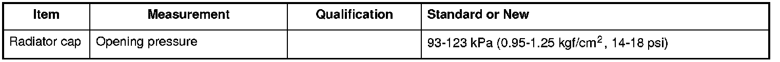 Radiator Cap Specifications