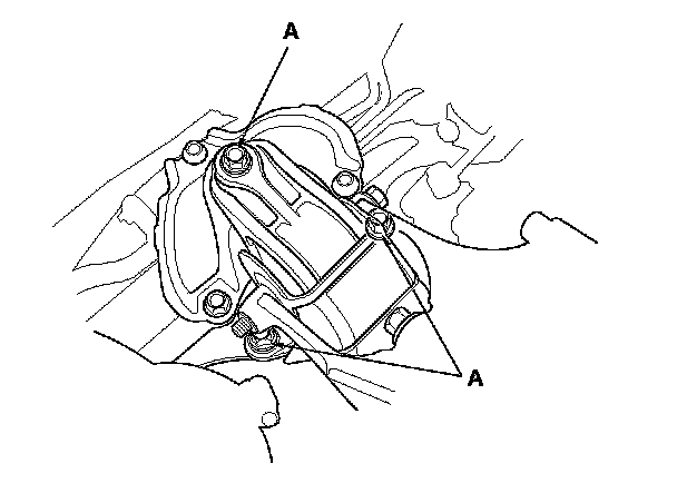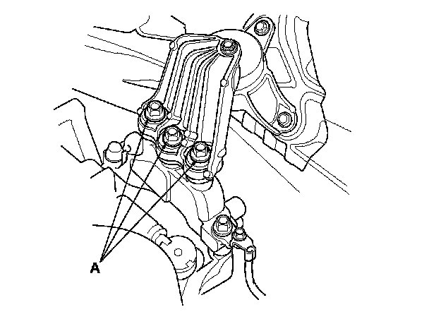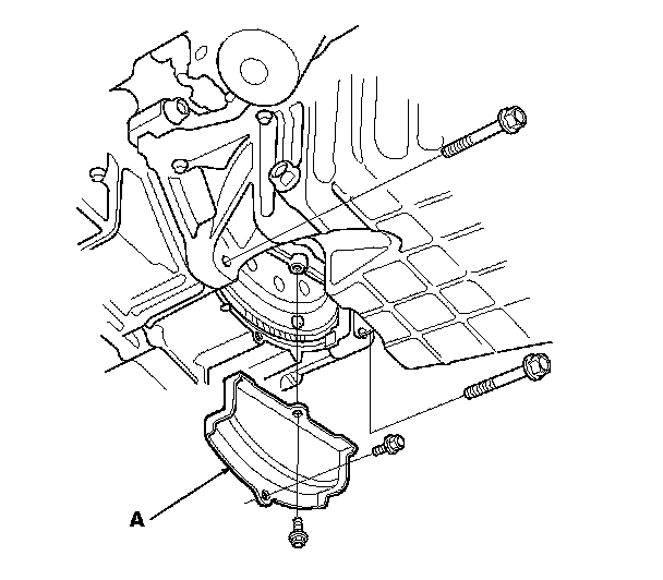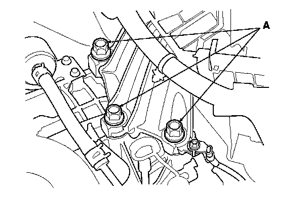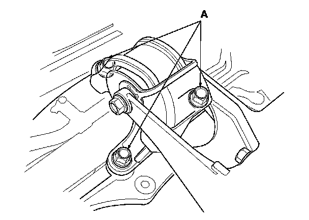 8. Loosen the upper transmission mount bracket mounting bolts (A).