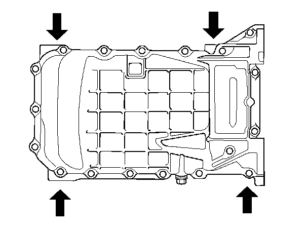 21. Using a flat blade screwdriver, separate the oil pan from the engine block in the places shown.