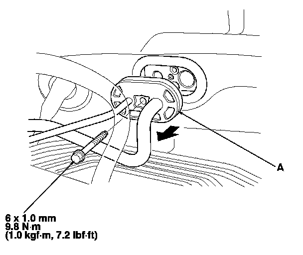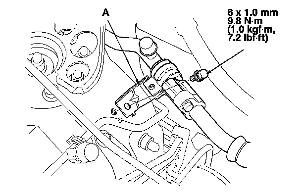 3. Remove the bolt, then disconnect the A/C line (A) from the evaporator core.