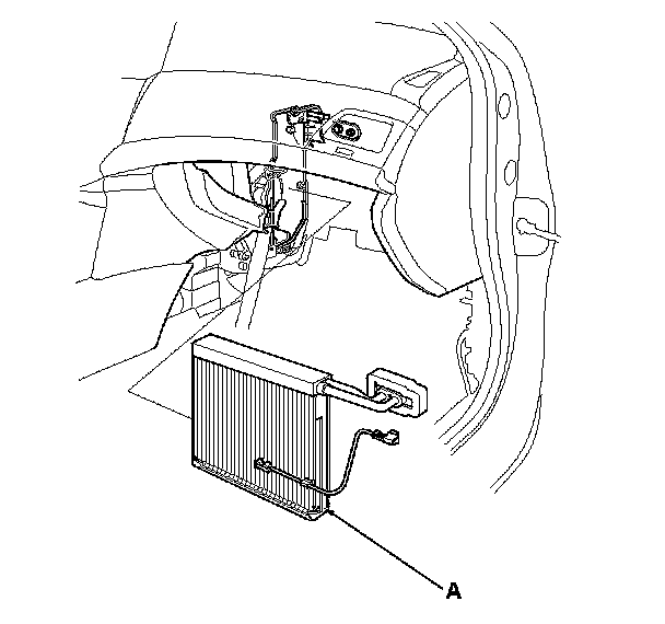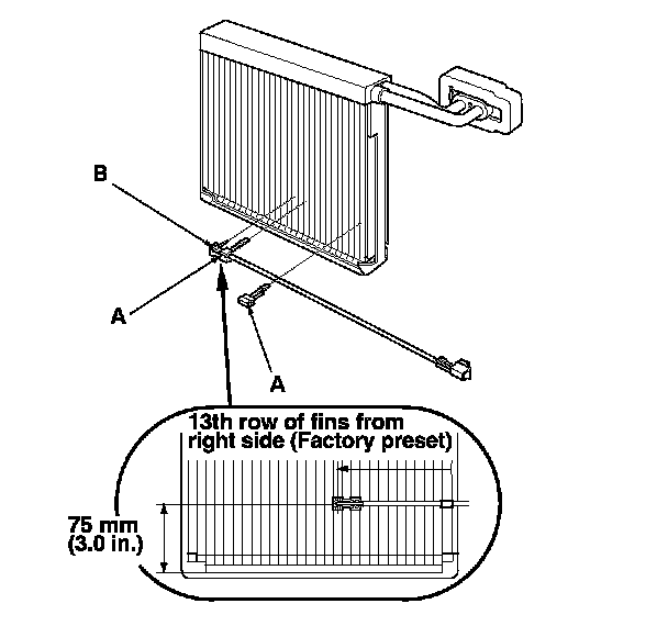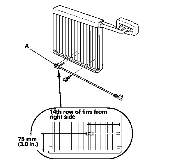 9. When the evaporator temperature sensor (A) is reinstalled onto a new evaporator core, set the evaporator temperature sensor in the 13th fin from the right side.