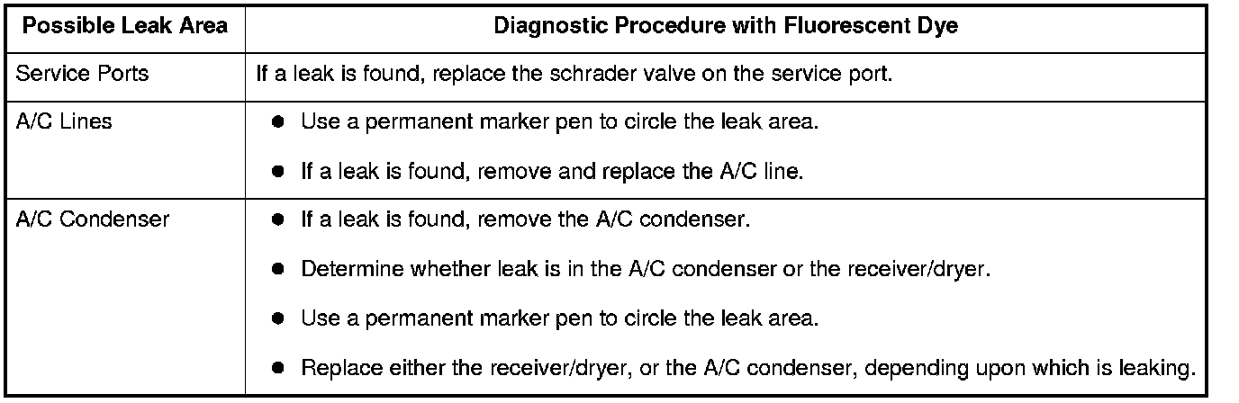 - Small leaks may take up to 1 week of vehicle operation (with normal A/C use) to become visible.