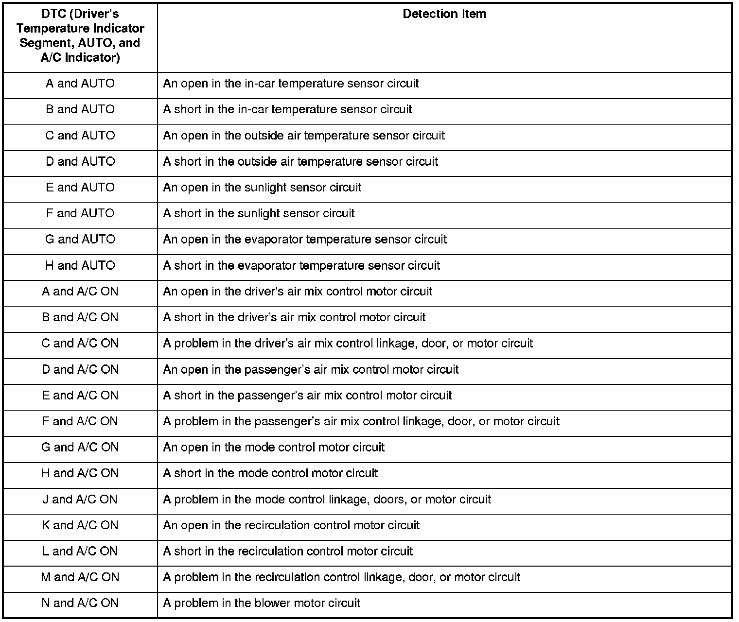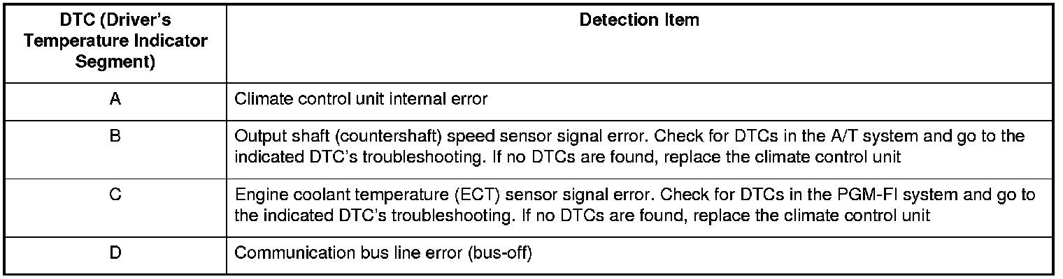 - If there is a problem with the system, the temperature indicator flashes 88, and the A/C ON indicator or the AUTO indicator (or both) also flashes. Segments in the temperature indicator then indicate which DTCs are present.