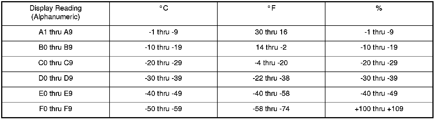 - The sensor values will be displayed in degrees Celsius (°C) or an alphanumeric code. Use the chart to convert the value to degrees Fahrenheit (°F).