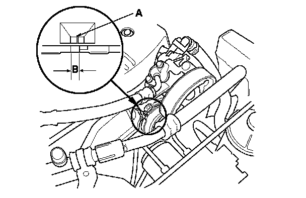 2. Check the position of the auto-tensioner indicator's pointer (A) is within the standard range (B) as shown. If it is out of the standard range, replace the drive belt. Service and Repair