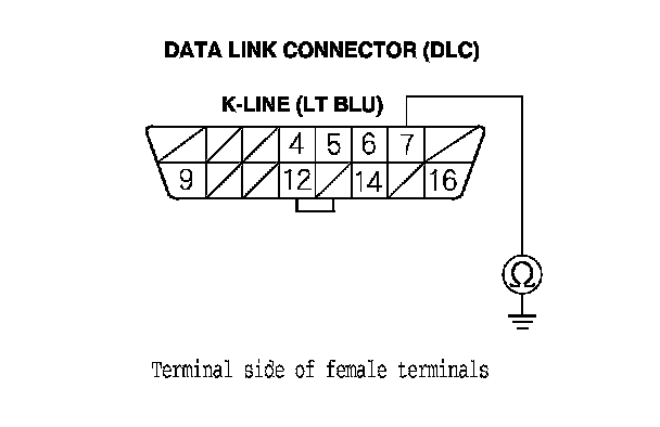 17. Check for continuity between DLC terminal No. 7 and body ground.