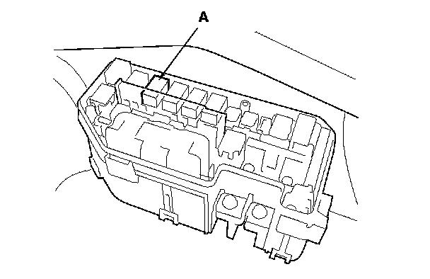 46. Remove PGM-FI main relay 2 (FUEL PUMP) (A) from the driver's under-dash fuse/relay box.