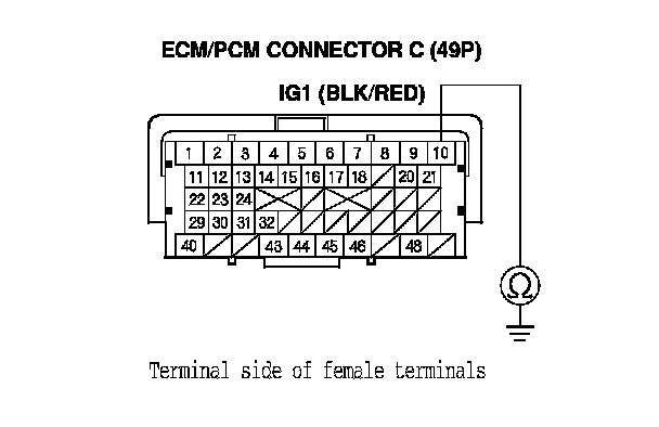 51. Check for continuity between ECM/PCM connector terminal C10 and body ground.