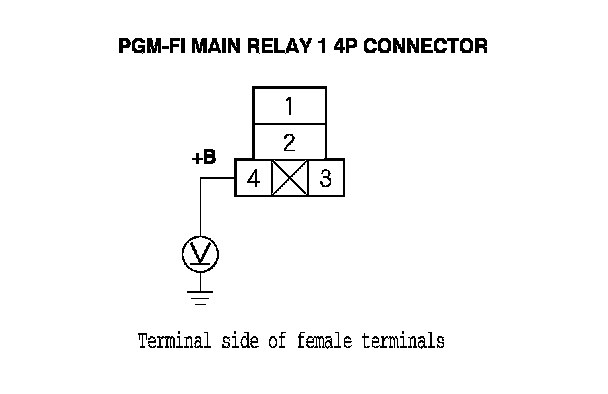 63. Measure the voltage between PGM-FI main relay 1 4P connector terminal No. 4 and body ground.