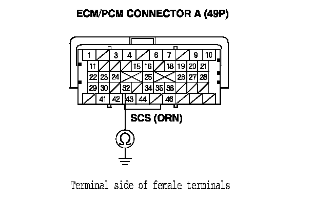 7. Check for continuity between ECM/PCM connector terminal A32 and body ground.