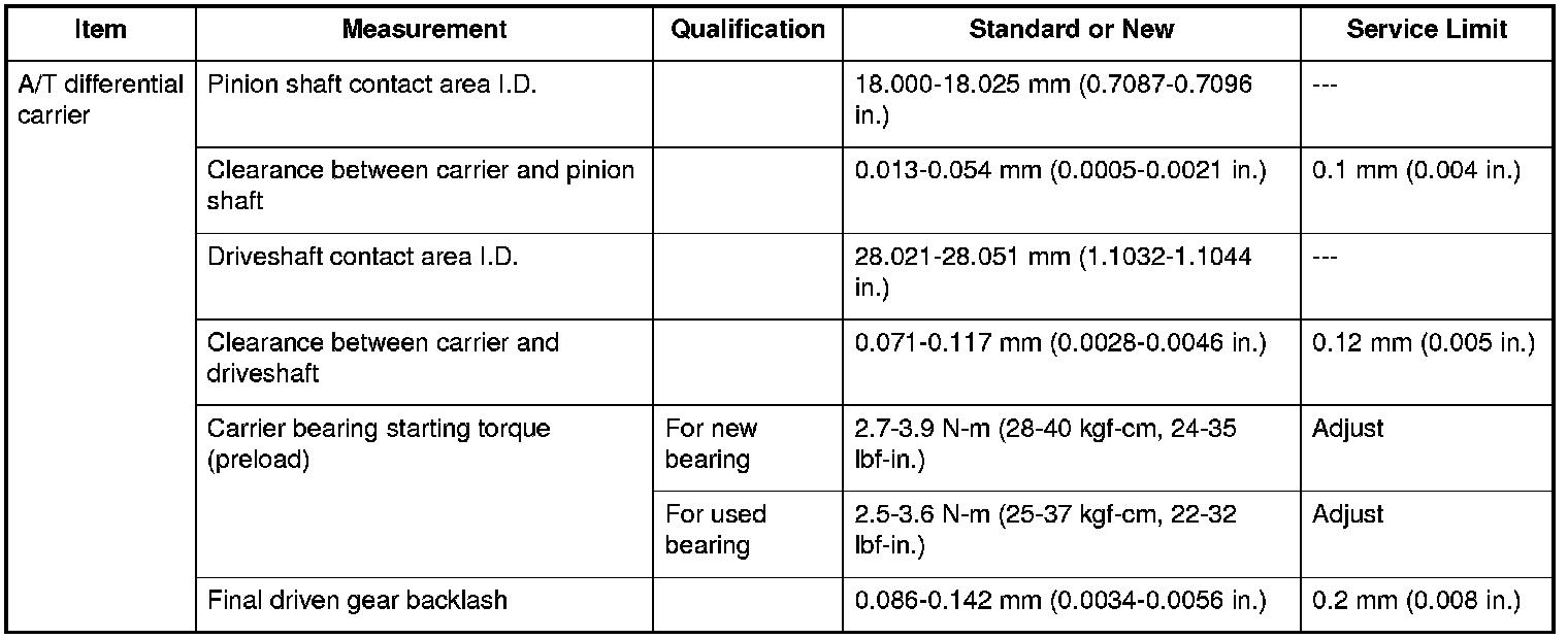 Differential Carrier Specifications (A/T)