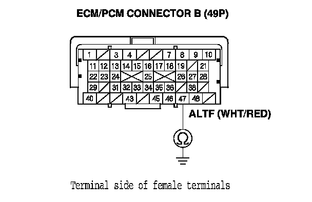 8. Check for continuity between ECM/PCM connector terminal B47 and body ground.