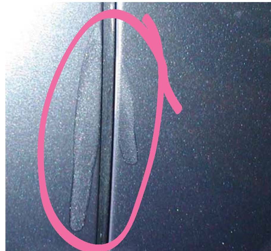 ^ Before photographing the paint defect, wash and completely dry the vehicle. Dirt, dust, and water spots visible in the photos may cover the paint defects and make them difficult to diagnose.