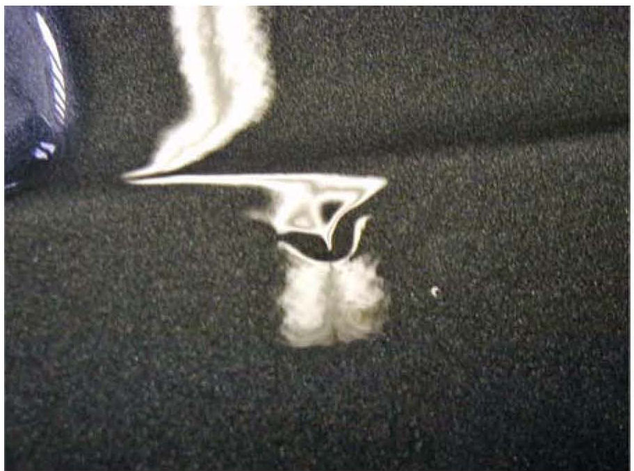^ Surface paint defects photograph better inside a shop with artificial light, such as that produced by overhead fluorescent tubes. While viewing the vehicle through the camera's viewfinder or LCD screen, move the camera to position the fluorescent light's reflections over and around the defect, carefully watching for distortions in the light that best reveal the surface defect.