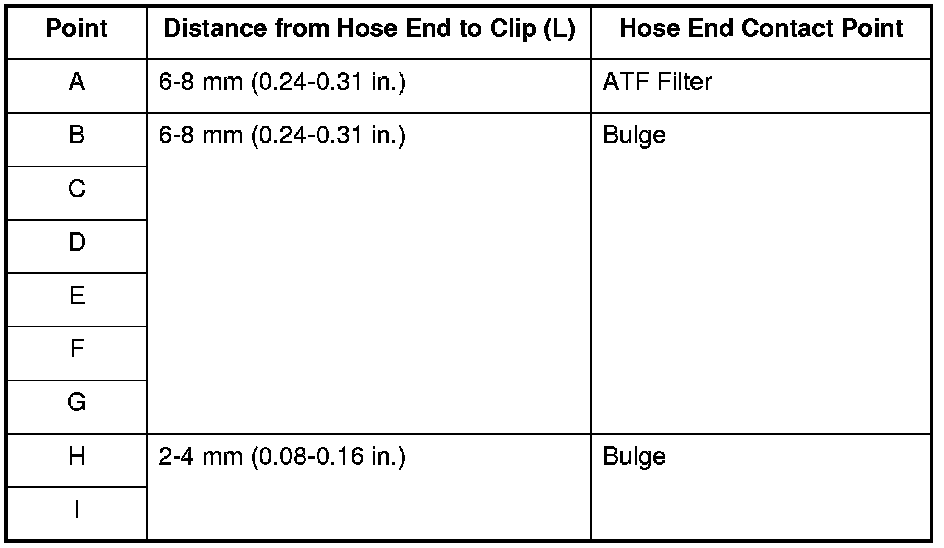 1. Install the ATF cooler hoses over the ATF cooler lines with the clips at appropriate points in reference to the following list. Align the pink paint mark (J) to the upside, and the white paint mark (K) to the downside.