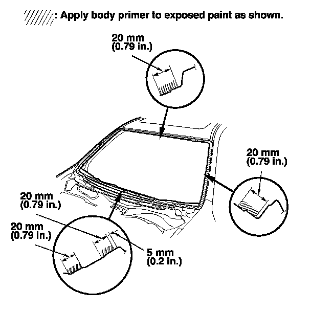 - Never touch the primed surfaces with your hands. If you do, adhesive may not bond to the windshield properly, causing a leak after the windshield is installed.