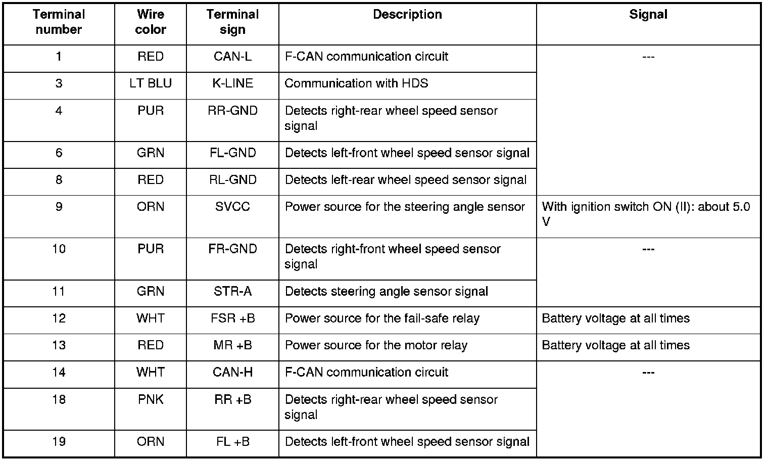 This system is composed of the VSA modulator-control unit, the wheel speed sensors, the steering angle sensor, the yaw rate-lateral acceleration sensor, and the system indicators in the gauge control module. The VSA modulator-control unit controls the ABS, EBD, TCS, VSA, and brake assist with the brake pressure of each wheel and reduces engine torque.