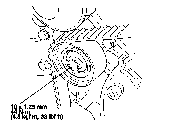 7. Tighten the idler pulley bolt.