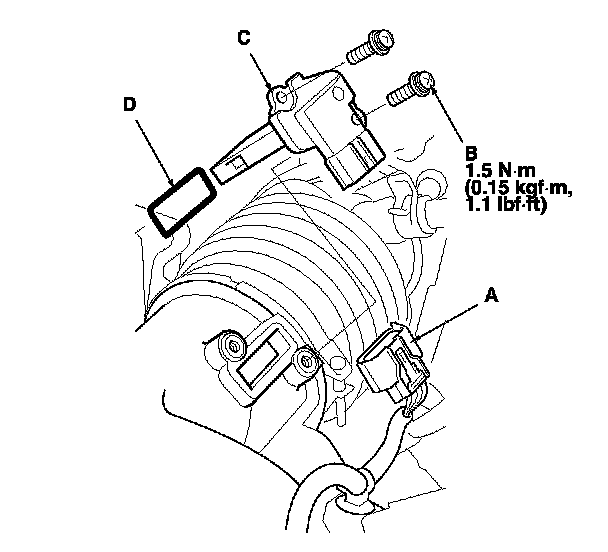 4. Install the parts in the reverse order of removal with a new O-ring (D).