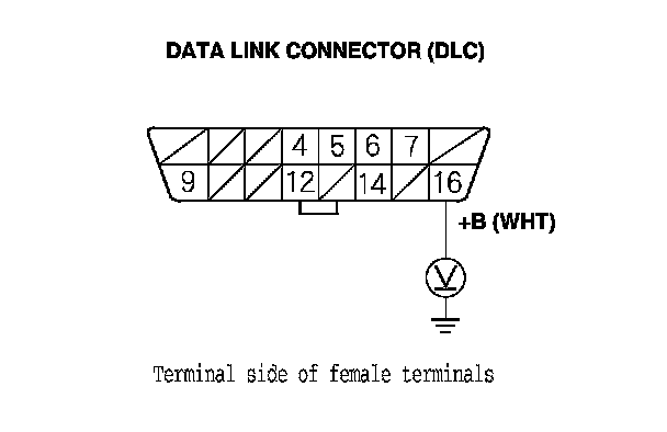 24. Measure the voltage between DLC terminal No. 16 and body ground.
