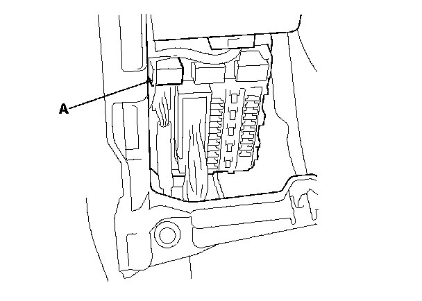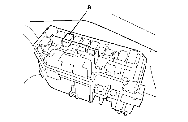 46. Remove PGM-FI main relay 2 (FUEL PUMP) (A) from the driver's under-dash fuse/relay box.
