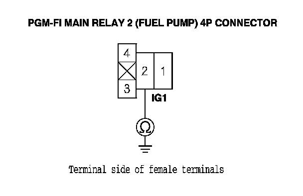 48. Check for continuity between PGM-FI main relay 2 (FUEL PUMP) 4P connector terminal No. 2 and body ground.